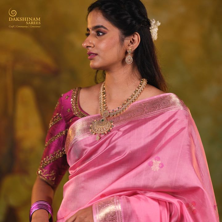 Dakshinam Sarees was conceived with the intention of sharing the beauty of handcrafted sarees from the Southern states with the rest of the country. Dakshinam Sarees now supports 28 artisanal communities sourcing handcrafted sarees that employ the traditional practice in principle, unique to a particular type of saree.